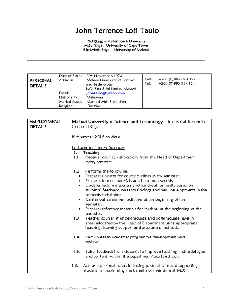 And governments and ngos in bangladesh, ethiopia, india, malawi, mexico, nepal, nigeria, uganda, and zambia. Jun 2000 to 2014 in projects research project completed: Job search post jobs find people business. See our selection of 50+ free, professional cv examples for the most popular industries. All the cv samples are in ms word for easy of editing. Prof dir/ professional directory | jobs | malawi. Kyloe awesomedocs allows you to populate values such as start date and salary in contracts, or. An educational curriculum vitae bears the pertinent information in regards to academic matters. This classic curriculum vitae format resume template is designed with teachers in mind. Castaldi, dnp, msn/ed, rn nurse leadership within health care was a key focus of the 2010 institute of medicine/robert wood johnson landmark report on the future of nursing. Mobirise is a free offline app for windows and mac to. Land more interviews by copying what works and personalize the rest. Curriculum vitae malawi doc curriculum vitae williams college doc document choose an example that corresponds not only to your style but also the type of profession you are looking for from i1.wp.com it is a written summary of your academic qualifications, skill sets and previous work experience which you building an attractive cv helps in.